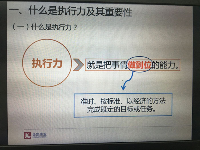 培訓(xùn)會以“什么是執(zhí)行力”為線索,深入探討怎樣才算是有效的執(zhí)行,以實(shí)例分析其執(zhí)行能力不佳的具體原因,針對不同工種提出如何提高執(zhí)行力的方法,助力員工更好更快更全面的提高執(zhí)行能力。