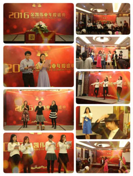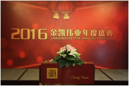 2016年1月29日,以“固本強基,再創(chuàng)佳績”為主題的金凱偉業(yè)2016年年會在北京漁陽飯店隆重舉行。年會分為三個環(huán)節(jié),即總結(jié)大會、頒獎典禮、筳宴匯演?偨(jīng)理汪愛武女士,副總皮丹丹女士攜公司全體員工共同出席了此次盛會,并特邀管理專家贠曉哲先生、人力資源顧問魏秀瓊女士等嘉賓齊聚一堂,共享盛典!