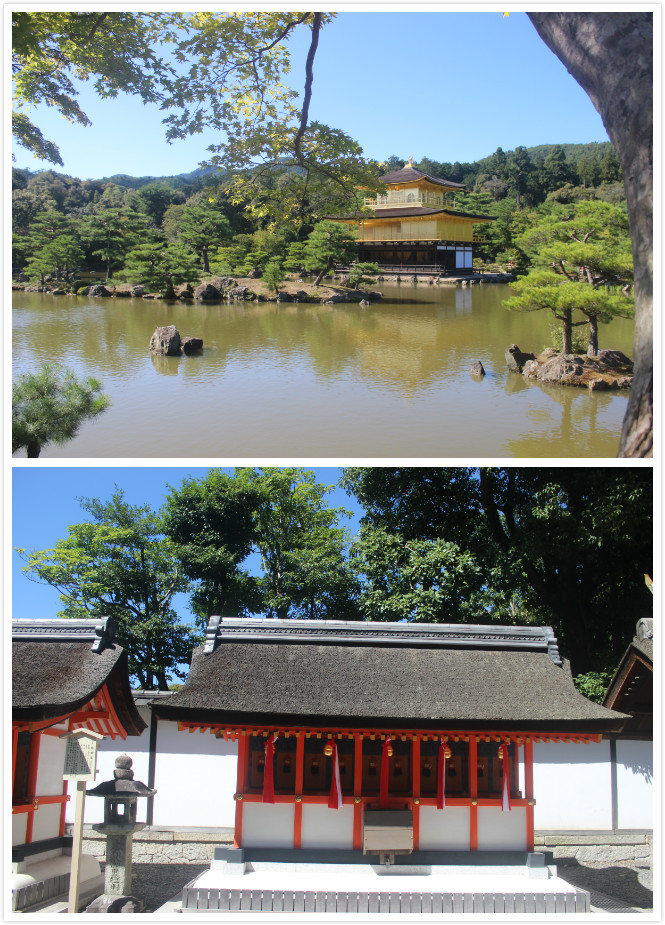 離開大阪城公園,一行驅(qū)車來到日本京都名寺—金閣寺。京都最具有濃郁的日本風情,是日本人心靈的故鄉(xiāng)。金閣寺坐落在一片蓊郁的樹林深處,前面臨水,在金色的陽光下,金閣寺整體的鍍金建筑倒映在清澈水里,湖水上下一片金色,景色煞是好看。好在天公作美,如若失了陽光,金閣寺就沒有這么明朗燦爛了。金閣寺內(nèi)樹木粗壯,枝繁葉茂。隨意漫步其中,享受樹蔭清涼,欣賞著里面零星點綴,感受那份古樸,那份自然。這一刻,安寧方能成為內(nèi)心唯一的永恒。