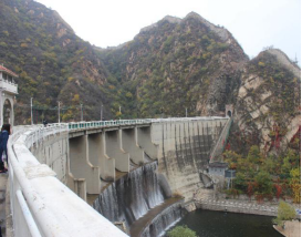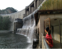 黃花城因漫山遍野的黃花得名。雖錯(cuò)過(guò)了長(zhǎng)城內(nèi)外花黃柳綠、鶯歌燕舞的春季,但此時(shí)的水長(zhǎng)城滿眼蒼綠、郁郁金黃,紅葉斑斑,像極了一位害羞的少女,一抹紅暈,一番別樣韻味。步入正門,半山腰一座橫穿仙山的山洞即是別有洞天。穿過(guò)洞道,一座壯觀的攔河大壩進(jìn)入我們的視線。水庫(kù)大壩主體由五個(gè)泄洪孔組成,中國(guó)人喜歡將美好寓意賦予到建筑上,分別代表金、木、水、火、土,五行俱全,也含五谷(稻、黍、稷、麥、菽)豐登之意。大壩底部有水簾長(zhǎng)廊,廊道彎曲通幽。從廊道穿行,有“水簾洞”的即視感。