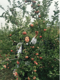 午餐結(jié)束后的活動(dòng)更精彩,我們一起來(lái)體驗(yàn)“豐收的喜悅”——蘋果采摘。一個(gè)個(gè)鮮亮紅光的富士蘋果掛在枝頭,十分誘人。有的人可是第一次見(jiàn)到蘋果樹(shù),顯得格外興奮。果園老農(nóng)還向我們介紹了種植蘋果的常識(shí)及趣事。大家親手將一個(gè)個(gè)又大又紅的蘋果從樹(shù)上摘下,現(xiàn)場(chǎng)一片歡聲笑語(yǔ),最后全員“滿載而歸”。