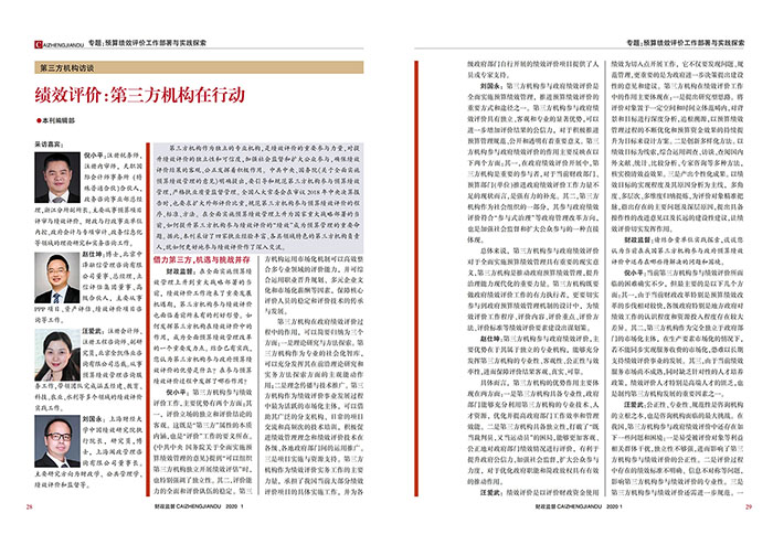 總裁汪愛(ài)武女士接受《財(cái)政監(jiān)督》雜志采訪時(shí)指出,第三方機(jī)構(gòu)在績(jī)效評(píng)價(jià)中發(fā)揮著重要作用,同時(shí)也面臨著巨大挑戰(zhàn),保證第三方機(jī)構(gòu)參與績(jī)效評(píng)價(jià)的公正性、專(zhuān)業(yè)性和規(guī)范性是我們亟待解決的問(wèn)題。面對(duì)如此困境,我們可以借鑒國(guó)外第三方機(jī)構(gòu)一些好的經(jīng)驗(yàn)和做法,但更需要的是政府的大力支持和撫育以及第三方機(jī)構(gòu)加強(qiáng)自身建設(shè)。
