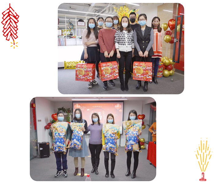 伴隨著歡快的《春節(jié)序曲》,公司為全體員工準備的過年禮盒及新年紅包隆重登場了。同時,響應國家防疫號召,鼓勵外地小伙伴兒留京過年,公司還特意為留守員工準備了特別新年大禮包!活動現(xiàn)場,大家戴著口罩也難掩喜悅之情啊!