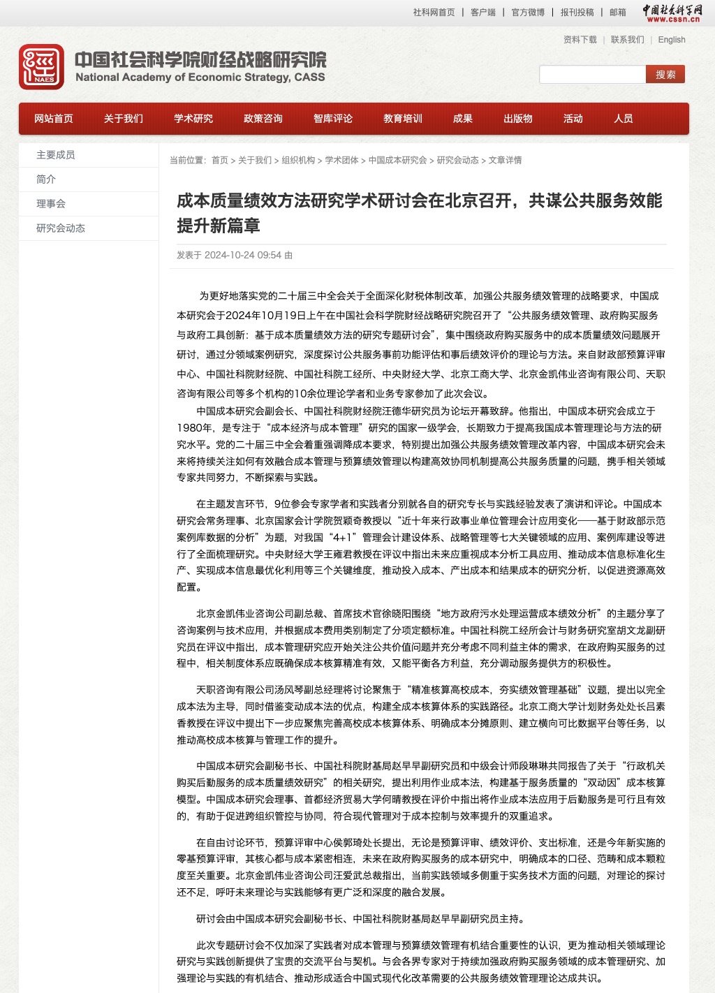 為進(jìn)一步提高我國(guó)成本管理理論與方法的研究水平,中國(guó)成本研究會(huì)于2024年10月19日在中國(guó)社會(huì)科學(xué)院財(cái)經(jīng)戰(zhàn)略研究院召開(kāi)了成本質(zhì)量績(jī)效方法研究學(xué)術(shù)討論會(huì)議。公司總裁汪愛(ài)武女士、副總裁徐曉陽(yáng)先生受邀參加。