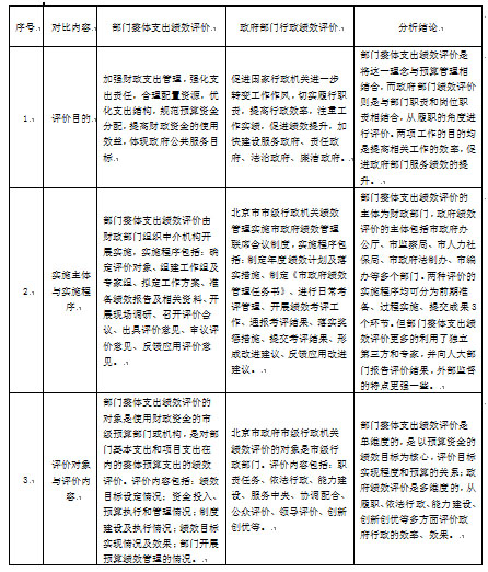表:部門整體支出績(jī)效評(píng)價(jià)與政府部門行政績(jī)效評(píng)價(jià)對(duì)比分析