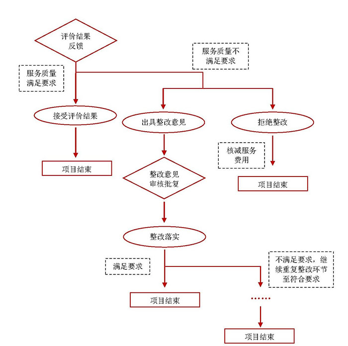 政府購(gòu)買服務(wù)項(xiàng)目的開展與實(shí)施,最終是以政府部門的服務(wù)要求和服務(wù)對(duì)象滿意度為導(dǎo)向。對(duì)于服務(wù)質(zhì)量較好的承接主體,在出具評(píng)價(jià)結(jié)果后,即完成了該項(xiàng)目的服務(wù)工作;而針對(duì)未按照購(gòu)買主體要求實(shí)施、服務(wù)質(zhì)量較低、服務(wù)對(duì)象存在諸多不滿意之處的服務(wù)項(xiàng)目,作為購(gòu)買主體,政府部門可要求服務(wù)承接主體制定相應(yīng)的整改計(jì)劃并按期落實(shí)整改工作,直至服務(wù)工作符合要求、受益群眾滿意度達(dá)到計(jì)劃標(biāo)準(zhǔn)為止。對(duì)于不適宜開展整改工作或承接主體拒絕整改的項(xiàng)目,將按照項(xiàng)目協(xié)議及相關(guān)法律法規(guī),核減一定比例的服務(wù)費(fèi)用。評(píng)價(jià)結(jié)果反饋應(yīng)用流程見圖1。