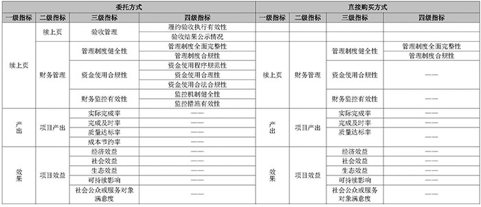 參考其他財(cái)政支出項(xiàng)目績(jī)效評(píng)價(jià)內(nèi)容,主要從項(xiàng)目投入、過(guò)程、產(chǎn)出、效果四個(gè)方面考慮進(jìn)行評(píng)價(jià)!墩(gòu)買服務(wù)管理辦法(暫行)》中明確,根據(jù)服務(wù)項(xiàng)目的需求特點(diǎn),政府購(gòu)買服務(wù)可采取購(gòu)買、委托、租賃、特許經(jīng)營(yíng)、戰(zhàn)略合作等形式。根據(jù)我國(guó)政府購(gòu)買服務(wù)的發(fā)展現(xiàn)狀,本文主要對(duì)購(gòu)買和委托兩種方式進(jìn)行重點(diǎn)說(shuō)明。