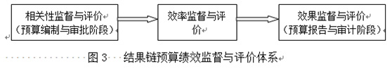 由此,將結(jié)果鏈帶入預(yù)算監(jiān)督與評價(jià),可形成由相關(guān)性、效率和效果組成的,覆蓋預(yù)算周期全過程的績效預(yù)算監(jiān)督與評價(jià)體系(如圖3所述)。